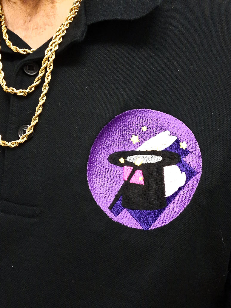 This T-shirt with the hidding bunny, top hat, and wand is available. $35 plus shipping. Embroidered text added for $5.